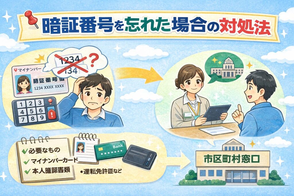 暗証番号を忘れたりロックされた場合は、住民票のある市区町村の窓口で再設定できます。