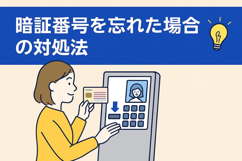 本人確認には「顔認証」か「暗証番号(4桁)」が使われますが、「暗証番号って何?」「忘れたらどうするの?」