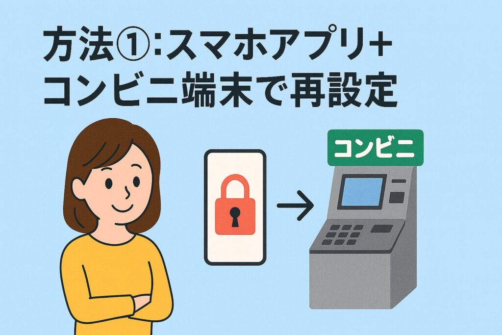 方法①:スマホアプリ+コンビニ端末で再設定
